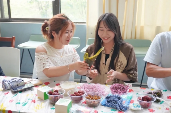 在手工制作香囊环节,大家十分用心地制作艾草香囊。虽然有的人是第一次制作香囊,但大家互帮互学,其乐融融,一批造型可爱、立体饱满又精致的小香囊就做好了。